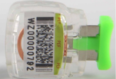 新型电子铅封,封签内嵌入了RFID射频芯片,每个芯片内具有识别码,无法进行仿造。芯片具有字节的存储容量,封印中的信息加密存储,读写过程进行合法性校验。当铅封印启封时,一旦破坏封印,RFID嵌体也将同时被破坏,此铅封将作废。相比传统的铅封封印,区别在于有一颗“电子心脏”不可替换。当计量表具加上电子铅封后,监督检查人员在进行现场检查时,将采用手持式读取终端靠近电子铅封,铅封里的芯片就能发出无线信号,与手持终端进行识别,判定真伪,作弊者一旦开启或伪造铅封,将留下确凿证据。